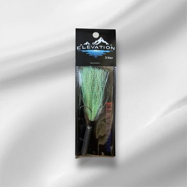 The single pack hand tied 3/4 oz 4-inch chartreuse glow tinsel jig is an excellent addition that will enhance your tube jig colors.